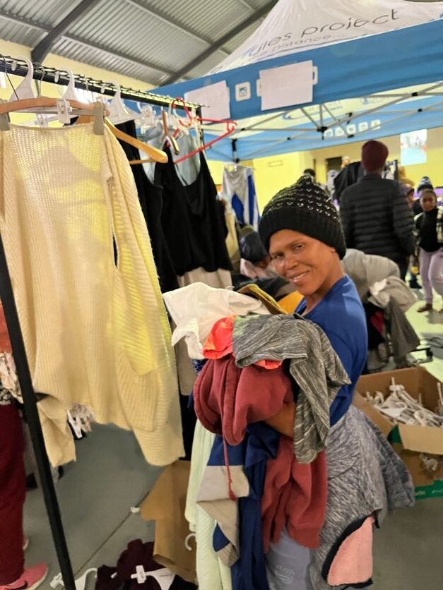 Our Cape Town team packed vans to the brim with pre-loved clothing, household items, and essentials donated by our incredible supporters. With hearts full of excitement, they made the journey to Elands Bay ready to join forces with our local operations team to sort, unpack, and set up what would become a weekend to remember.
